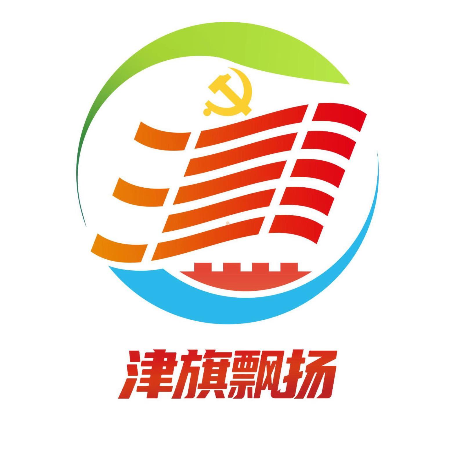 集团党建品牌名称为“津旗飘扬”。标识整体由党徽、飘扬红旗、堡垒、绿、蓝两个飘带及津旗飘扬四个字组成。